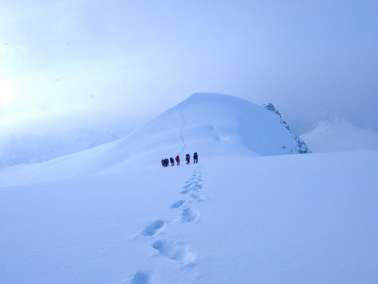 The expedition traverses alpine meadows, glacial valleys, and high camps before culminating in a technical summit push involving snowfields, crevasses, and exposed ridgelines.